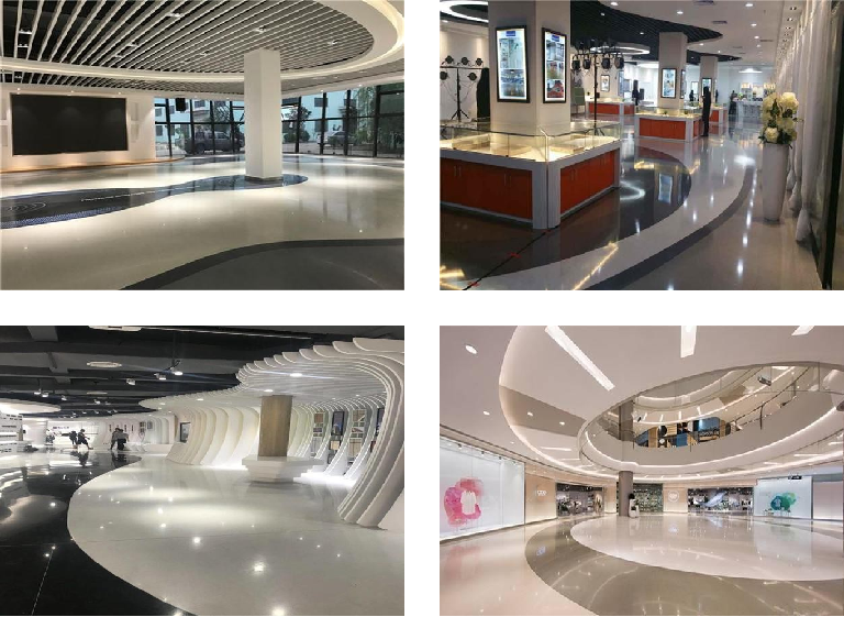 将不同颜色的环氧水磨石地板整体铺设在一起,用颜色将不同功能的区域分隔开来,既有流光和色彩的视觉享受,同时也体现了使用功能
