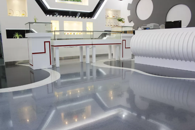 环氧水磨石地板的防滑性能能有效防止儿童在医院办公区玩耍时摔倒